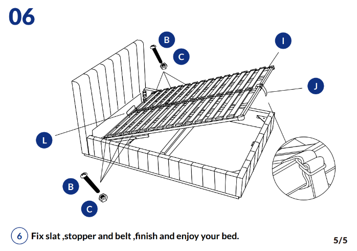Before assembling your Brentwood Gas Lift, check that all parts, hardware, and tools are included. Place components on a soft, clean surface to prevent damage. Attach the headboard, footboard, and side rails using the supplied fixings. Install the lift mechanism and central support beam according to instructions, ensuring smooth operation. Secure all bolts firmly without over-tightening. Place and lock the slats into position. Double-check all connections before attaching the mattress. Your Brentwood Gas Lift bed is now ready for safe use.