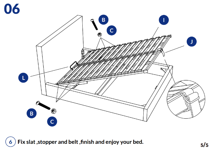 Before assembling your Felix Gas Lift, check that all parts, hardware, and tools are included. Place components on a soft, clean surface to prevent damage. Attach the headboard, footboard, and side rails using the supplied fixings. Install the lift mechanism and central support beam according to instructions, ensuring smooth operation. Secure all bolts firmly without over-tightening. Place and lock the slats into position. Double-check all connections before attaching the mattress. Your Felix Gas Lift lift bed is now ready for safe use.