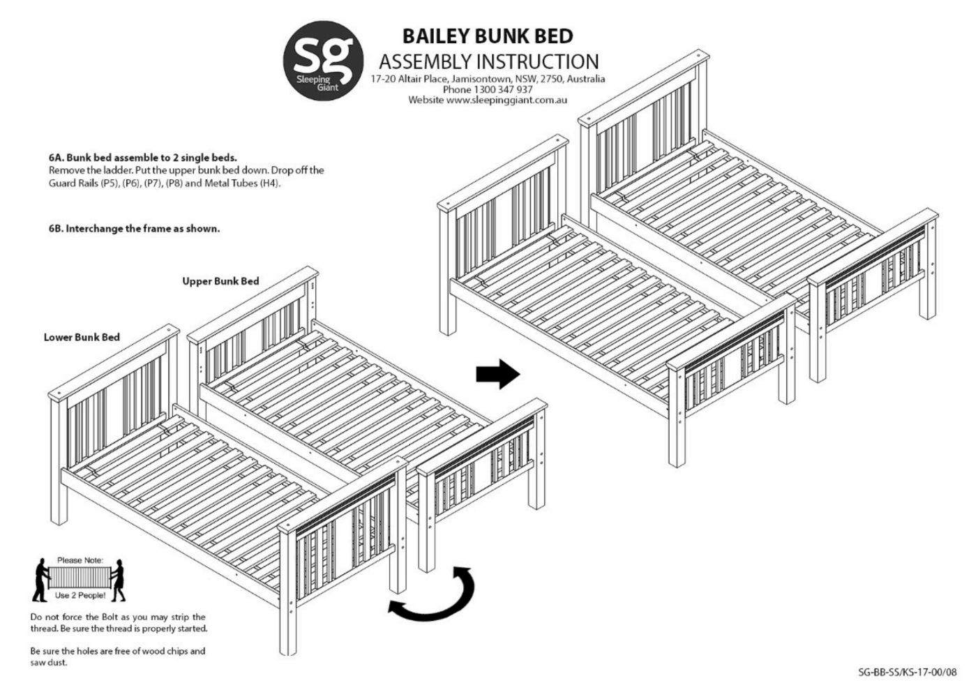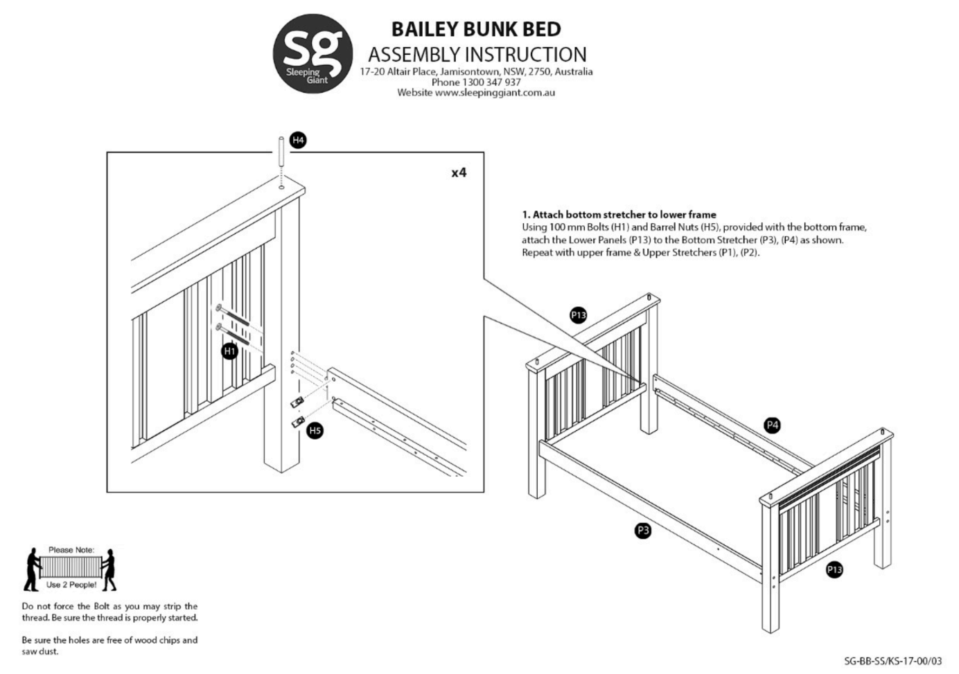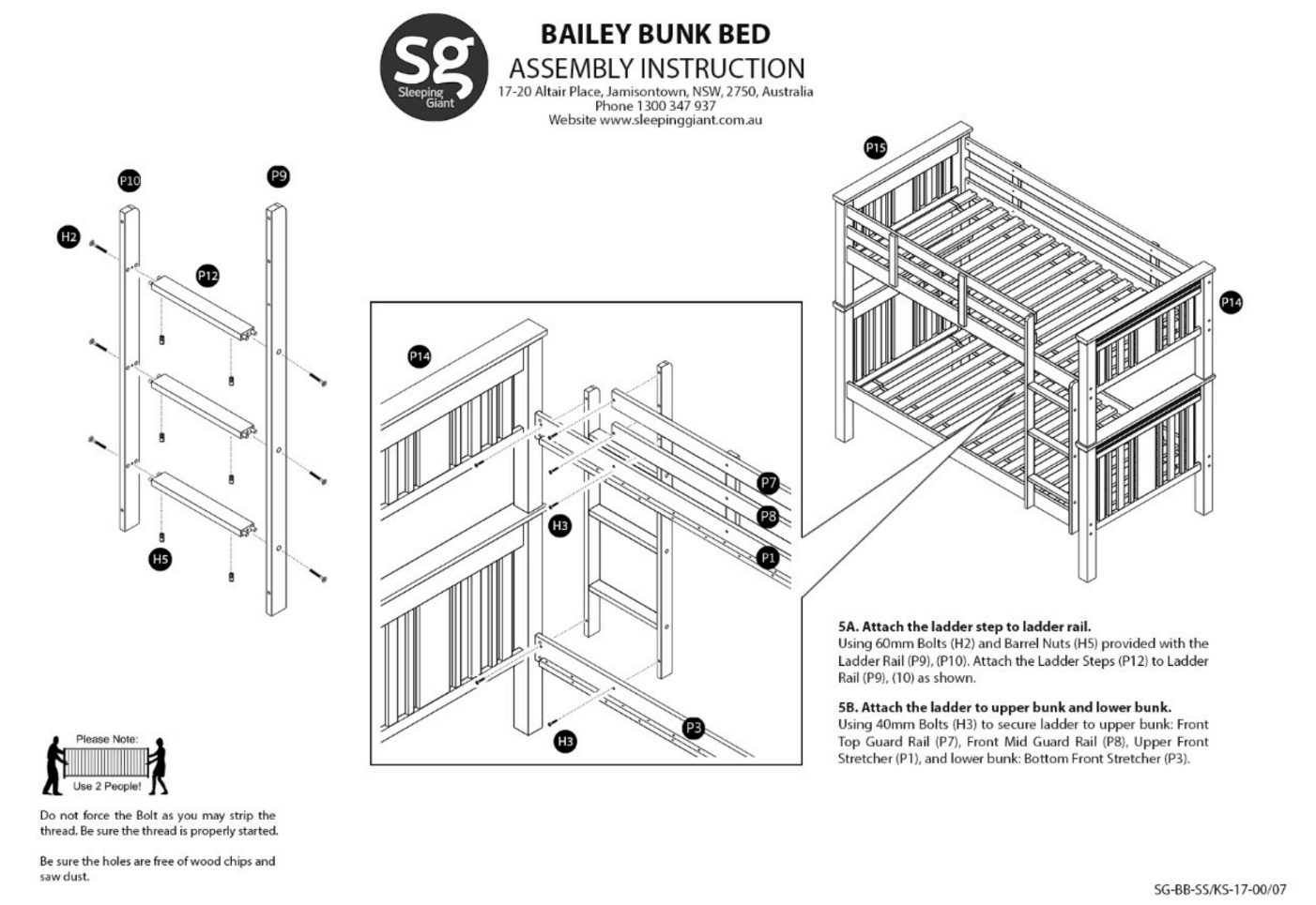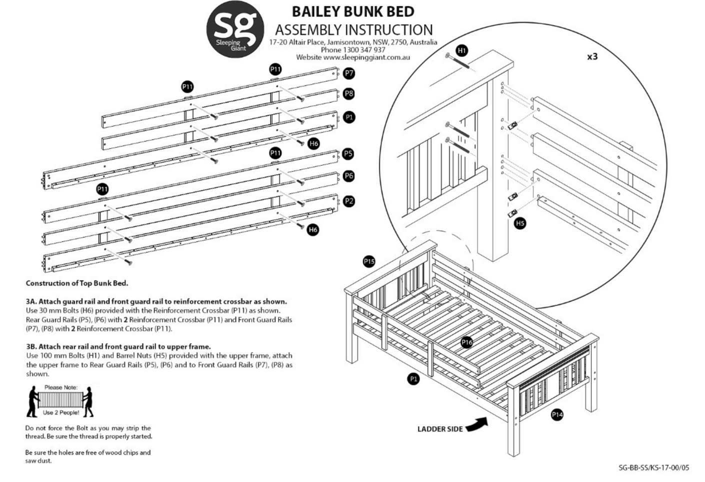 Before beginning assembly of your Bailey bunk (single & single), ensure all parts, fittings, and tools are included. Place components on a clean, soft surface to prevent damage. Attach the headboard and footboard of the Bailey bunk (single & single) to the side rails using the supplied fixings. Install the central support beam, if applicable, for added stability. Secure all fittings firmly without over-tightening. Evenly position and secure the slats across the frame. Check all connections before placing the mattress. Your Bailey bunk (single & single) is now ready for use.