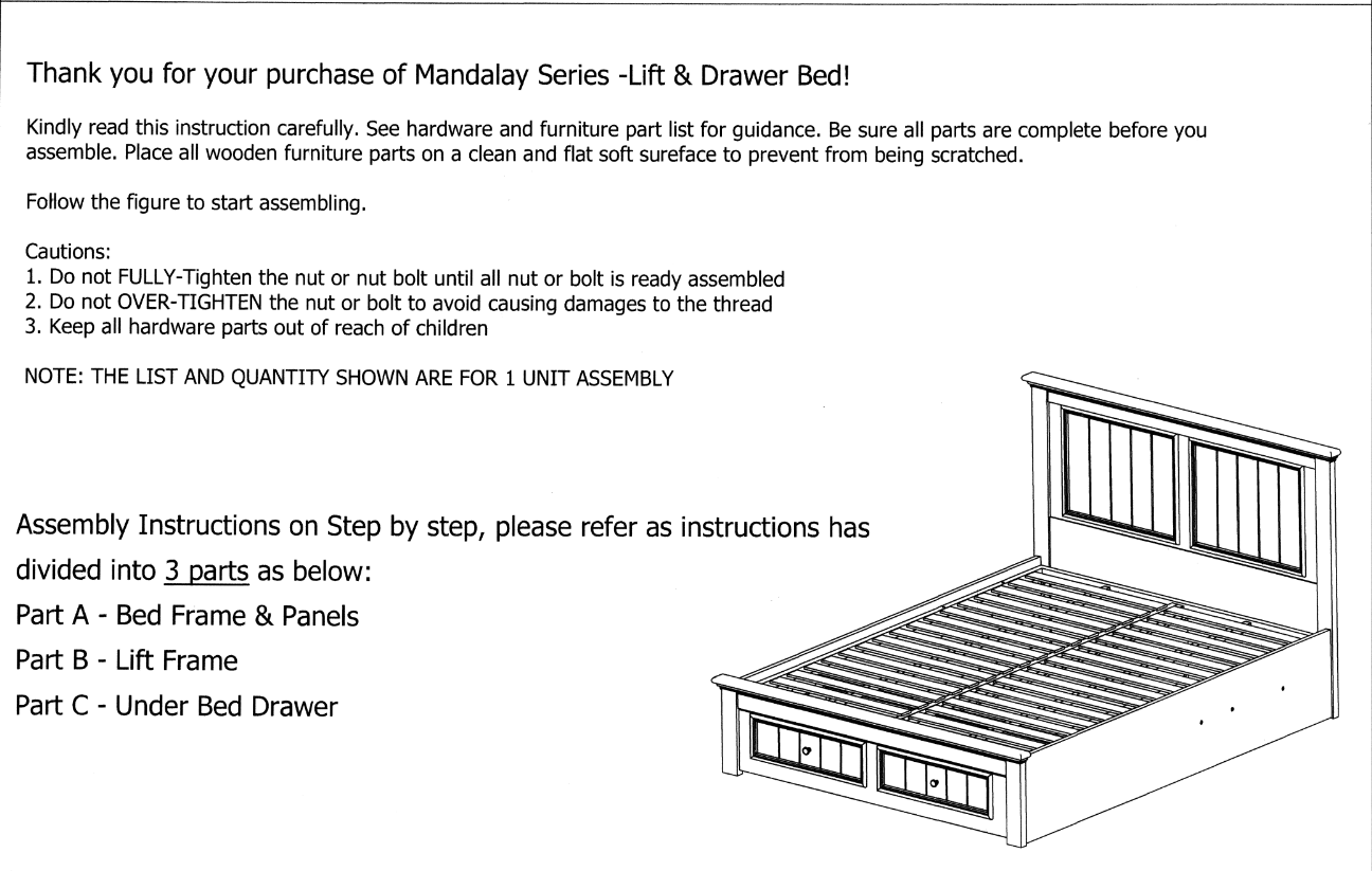 Lift Bed Assembly Guide – Mandalay Lift and Drawer Bed