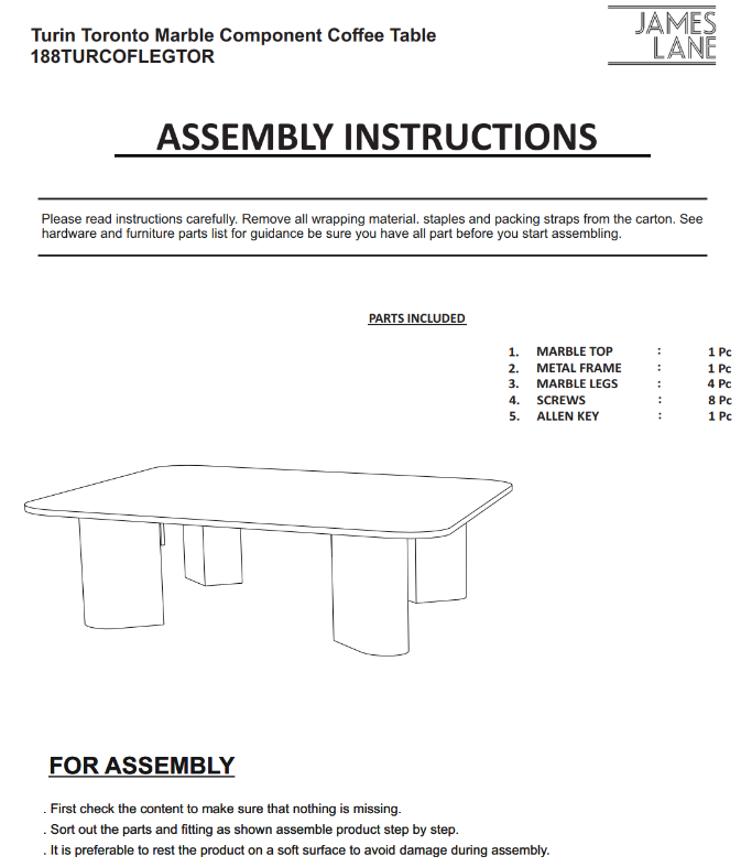 Coffee Table Assembly Guide – Turin Toronto Marble Component Coffee Table