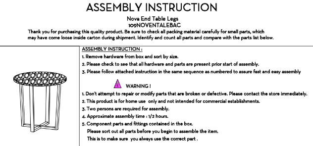 No assembly is required. Your Nova Side Table Legs is now ready for use.