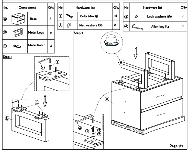 Bedside Assembly Guide – Croft Bedside With 2 Drawers