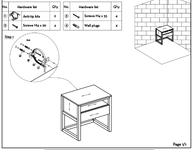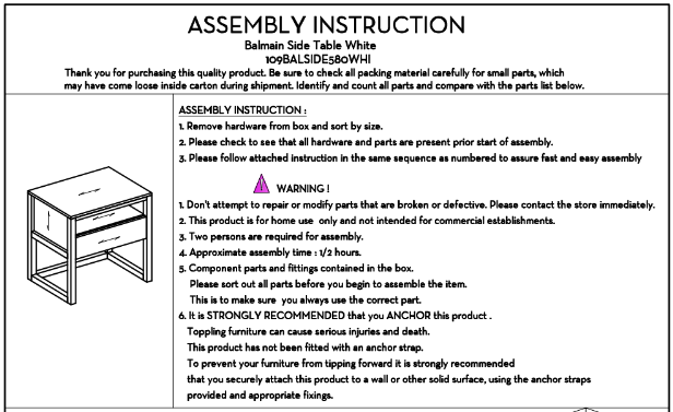 Bedside Assembly Guide –Balmain Side Table (Feet/Legs Required)