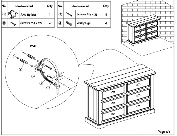 Before setting up your Maine Dresser, ensure all feet/legs and hardware are included. Place the dresser on a clean, soft surface to prevent damage.