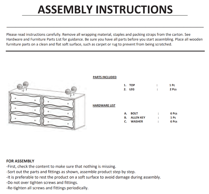 Dresser Assembly Guide – Baxter 6 Drawer Dresser